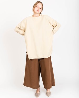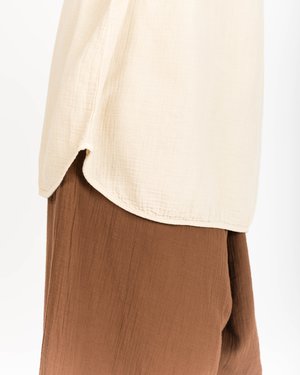 Revisited Matters is an independent design collectsive based in Brooklyn, New York. Its motto is to produce durable and timeless products, mixing fine materials with functional ones. The collectsives approach to clean design and pure lines is complemented by a commitment to produce sustainable products. - Long sleeves tunic in crinkle cotton - Can be worn as mini dress - Wide neckline - Rounded side slits - Self-fabric bias finish at collar and hems - Boxy oversized fit - 100% crinkle cotton - Dry-clean - Designed in Belgium, made in India