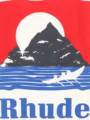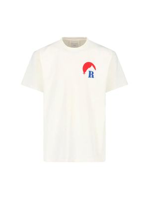 Men > Clothing > Topwear > T-Shirts Rhude "Moonlight" white cotton crew neck T-shirt with short sleeves, contrast logo2 print on the front, maxi logo2 print on the back, ribbed trims, and straight hem. Composition: 100% Cotton.