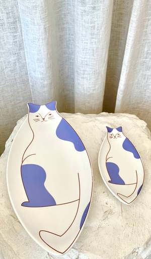 Set of two cat dishes perfect for trinkets, or serving food. Get creative! Olives in the big cat, pits in the kitten! Large: 10x5 inches Small: 6x3 inches