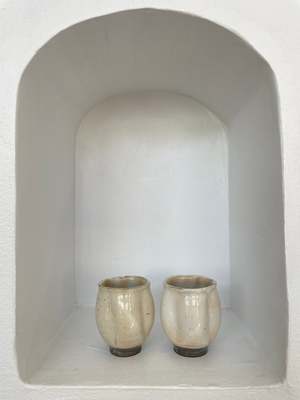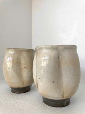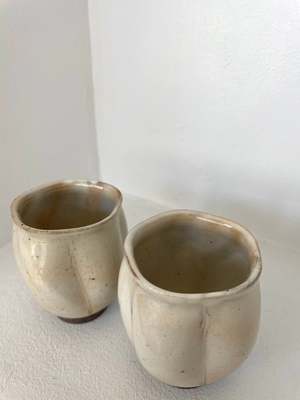 Set of two natural grey toned cups with slight indentation that emulates flower petals. Handmade by Takashi Nakazato (certified) in Japan.