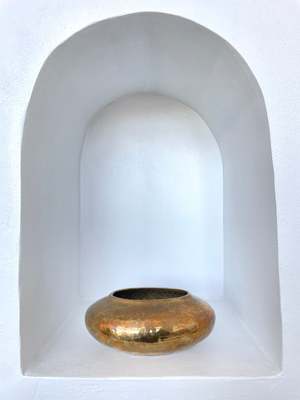 Short oval planter made of textured copper colored brass. Perfect for cacti or a mini flower bed!