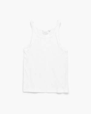 The Vintage Rib Tank in bone from Richer Poorer features a slim fit and is crafted from eco-friendly Lyocell rib fabric. It offers a high neckline with a subtle racer-front design and a racerback style. 94% Lyocell, 6% Spandex.