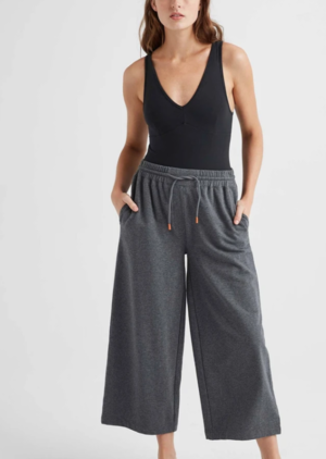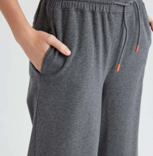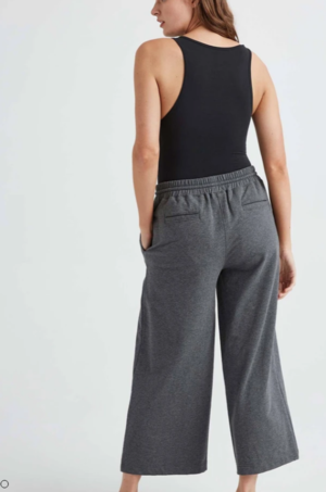 Rciher Poorer Terry Wide Leg Pant - Charcoal - Unique stretch, mini loopback French Terry - Fabric is super drapey, lightweight, and moisture-wicking - Wide leg pant fit - Discrete side seam pockets and faux J-stitch tailoring details - Adjustable covered elastic waistband - Dipped end drawcords - Model is 5'9" | Wearing size S. Content: 95% Cotton, 5% Spandex Machine wash cold. Tumble dry low. Cool iron. Do not dry clean. Imported.