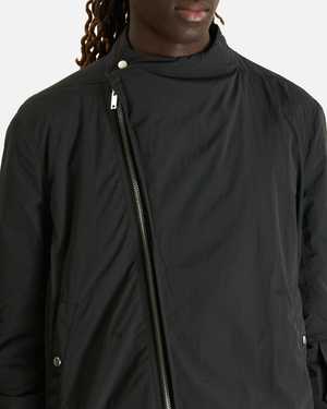 The Hollywood Flight jacket is crafted from a lightweight brushed nylon and features a funnel neck collar with a top snap closure, an offset zip front closure, front welt pockets with snap closure, and elasticated ribbed cuffs and hem. Type: Jackets Product SKU: RU02E1760-MT-09 Fit - Relaxed fit, below hip length, full length sleeves. - Model is 6'4" and wears size 48. Product Features - Funnel neck with top snap closure - Offset zip front closure - Level shoulder seams - Dropped shoulder seams - Zip pocket on arm - Front welt pockets with snap closure - Interior zip pockets - Snap button detailing at back yoke - Elasticated ribbed cuffs and hem - Lined - Water repellent - Crisp handfeel Composition - Main: 100% Nylon - Trim: 100% Wool - Lining 1: 100% Cupro - Lining 2: 100% Cotton - Padding: 100% Polyester Made in Italy.