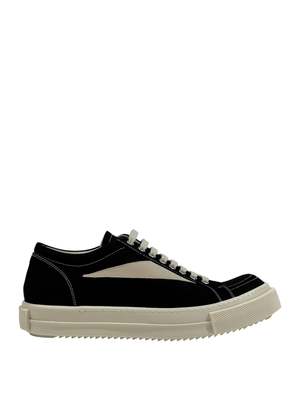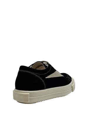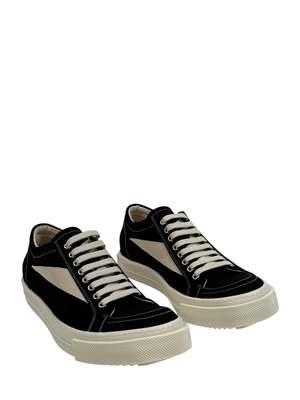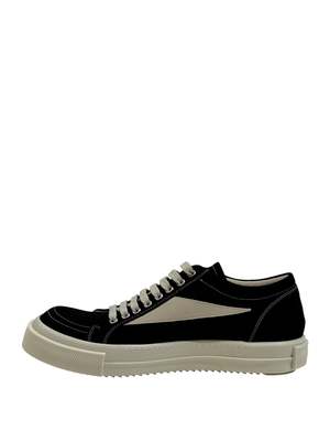 The Vintage Sneaks from Rick Owens DRKSHDW Spring/Summer 2026 collectsion. DRKSHDW SS26 Temple Penta Boat Sneaks in black/milk 13oz overdyed denim and suede leather with added toe and heel rubber for a more robust look. This is a combination of 13oz overdyed denim and suede leather. This medium-weight 13oz denim is overdyed and has a soft, washed handfeel. This fabric is made using GOTS-certified organic cotton, which means the natural fiber is grown without harmful chemicals, helping keep soil, air, and water cleaner from contaminants. Color: Black/Milk Material: Upper: 100% Cotton Back detail: 100% Calf Leather Lining: 100% Cotton Sole: 100% Thermoplastic Rubber Sole height: 3.5 cm Dust bag included in box. Fits true to size.