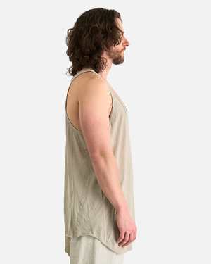 Rick Owens Fog Tank in Pearl. This top is crafted from a semi-sheer organic cotton and features a rib knit scoop neck and armscyes and a raw edge curved hem. Product SKU: RR01E5101-UC-08 Model measurements: - Loose fit - Model is 6'1" and wears size medium Features: - Rib knit neck and armscyes - Raw edge curved hem - Semi-sheer Composition: - 100% organic cotton - Made in Italy