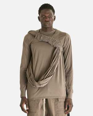 The Harness Tank by Rick Owens is crafted from an ultra lightweight cotton gauze jersey featuring a rounded neck and ruching on the chest that drapes down the front and around to the back. Product Features - Rounded neck - Ruching on chest - Draping connects to backside Fit - Regular fit - Model is 6'3" and wears size medium Composition - 100% cotton - Made in Italy Product SKU: DU01F4168-BHDB-34