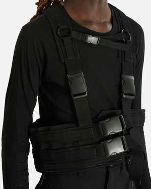 This harness is crafted from a padded cotton drill and features a square neck, cotton webbings straps, adjustable press-release shoulder straps, zip fastening at the hem, and a full lining. Fit - Regular fit - Model is 6'4" and wears size 48 Features - Square neck - Cotton webbings straps throughout - Adjustable straps at the shoulder and back - Metal O-rings at back - Zip fastening at hem - Fully lined Composition - Main: 100% cotton - Lining: 100% cotton - Made in Italy.