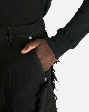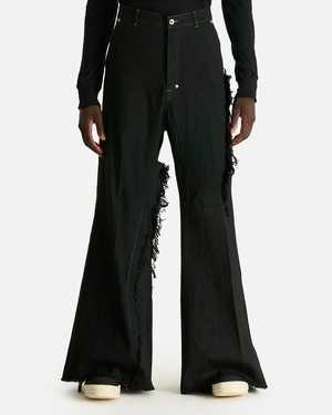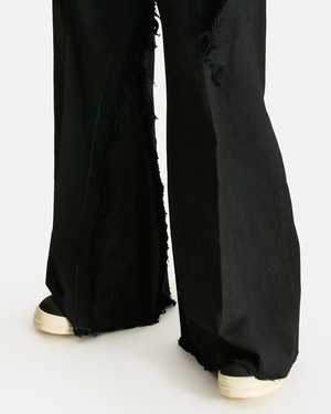These trousers are crafted from a 13oz Japanese denim and feature a button fly, dropped inseam, 4-pocket styling, distressed and raw edges at the leg seams and hem. Product SKU: RR02E1308-BBCL-09 Features: - Belt loops - Button fly - 4-pocket styling - Dropped inseam - Distressed, raw edge detail at seams and hem - Contrast stitching Model measurements: - Relaxed fit, straight leg, full-length - Model is 6'4" with a 30" waist and wears size 32 Composition: - Main: 100% cotton - Pocket lining: 52% polyester, 48% cotton Made in Italy.