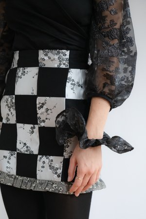 This is an incredibly special one of a kind patchwork piece. This piece took me way too long to ever make it again, but I hope it finds a very special home. And of course I had to make this patchwork into a mini skirt, it was too bold to do anything else with it ; ) A perfect one of a kind piece for someone special. Fits a 26.5 " waist best with some curves. 28% Rayon 72% polyester Dry Clean only Made in Montreal