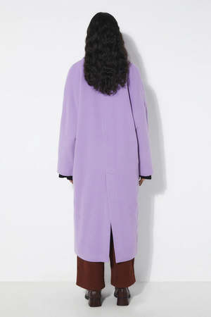 Oversize double-sided wool cloth coat. Tailored style with lapel collar and double-breasted fastening with two buttons. Side pockets. Lined. Ethically made in Portugal. 80% Wool, 20% Polyamide / Lining 100% Viscose Namita is 1.72 m tall and she is wearing size S. XS: 24" ptp, 23" hip, 46" long, 30" sleeve length from CB S: 25" ptp, 24" hip, 46.5" long, 30.5" sleeve length from CB M: 26" ptp, 25" hip, 47" long, 31" sleeve length from CB L: 27" ptp, 26" hip, 48" long, 31.5" sleeve length from CB Dry clean only.