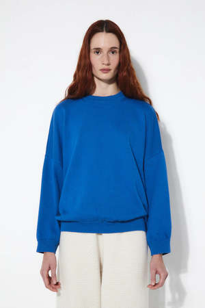 Soft knit sweater with floral silhouette detail on the back. Features a round neckline with ribbed trim, dropped shoulders, and ribbed cuffs and hem. Ethically made in Portugal.
