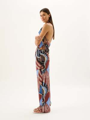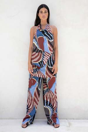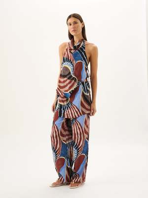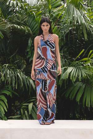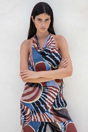 The Agave Halter Top in Nautica Print is designed with a draped halter neckline, relaxed silhouette, and a scoop back finished with delicate tie-side details. This versatile piece is a modern take on elevated summer dressing, pairing with the coordinating Tallow Pants for a polished look. Fabrication: 70% Viscose, 30% Silk Fit Notes: True to size