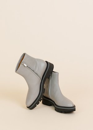Clergerie's Lune Ankle Boot is an ultra-light zippered ankle boot and features an articulated lug sole. Details - 1.75" heel (approximately). - Ankle height. Inside zipper. - Ultra-light, articulated lug sole. - Made in France. Color talc. 100% leather.