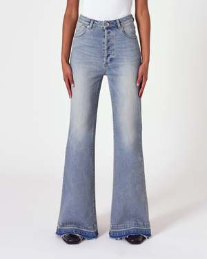 Rolla's iconic fit a high rise, slim fit flare. Specially angled and shaped in the back for a peachy look. Features signature vintage-toned button and trims with back pocket stitching. Button closure and full length leg. Crafted from premium super stretch denim that holds its shape. Measurements for size 8: - Rise: 11" - Inleg: 32" - Hem: 25.5" Fabric: 69% Cotton, 29% Viscose, 2% Elastane.