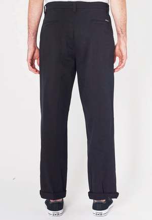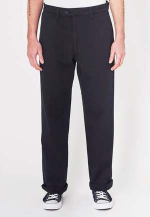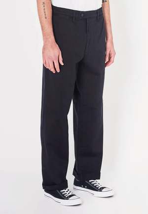 Rollas Lazy Boy Pant - v8 black drill The Lazy Boy Pant is delivered in one of Rollas loosest silhouettes to date through the seat and with a wide fit leg profile. These lazy boys have been garment dyed to give that well worn in look and can be rolled back or worn at full length. Sizing: Wide fit - Shop to size Materials: 98% Cotton, 2% Elastane - Twill cotton/elastane blend for added comfort - Garment dyed for worn in look - Based on easy wearing jeans from the 1990's - An excellent pair of pants Boki wears a size 32