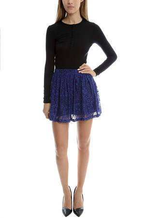 A fun and flirty lace skirt by Roseanna. Elastic waistband for a comfortable fit. Get on trend with this mini, style with a long sleeve tee tucked in tee for a fun & flirty vibe. - Hand Wash Cold * Model is 5'9" wearing a size 36 Designer ROSEANNA