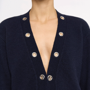 Designed to be worn as a jacket, this model features metal eyelets on the button placket, with a removable cuff-button-style closure to place as desired. A tone-on-tone R embroidery is discreetly placed at the bottom of the sleeve. Features straight-cut vest and metal eyelets on each side of button placket. Composition: 80% wool, 20% polyamide Fit: True to size. Made in Italy.
