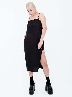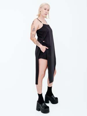 An interesting play on proportions, this square neck tank top hits at your natural waist with front and back extensions grazing mid calf. Cut in cotton viscose shirting, the hardware detailed faux leather strap adds a level of edgy coolness. Model is 5'7" / 170cm wearing size Small. Made in New York City. Shipping returns MADE TO ORDER ITEM, WILL SHIP IN 2-4 WEEKS. Orders will be shipped UPS Ground unless otherwise requested. Please expect delivery within 2-8 business days once your order has been shipped out.