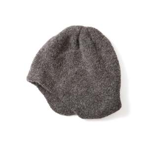 A beanie with ear flaps made from baby alpaca wool, known for its exceptionally soft and smooth texture. The boucle yarn, specially processed into looped fibers, traps plenty of air, making the hat both lightweight and highly insulatingperfect for colder seasons. Please avoid using a tumble dryer, as it may cause shrinkage. - 65% Alpaca, 16% Wool, 19% Nylon - Made in Japan