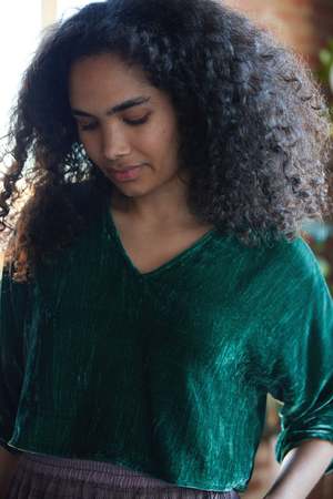 This velvetly cropped tee features a v neckline and architectural boxy silhouette. Spices up any bottom for all your holiday gatherings. MATERIALS & CARE Cotton/silk velvet Dry clean only SIZE & FIT Model 5' 9 | Size S S: chest 40", length 40", waist 16.5" M: chest 42", waist 42", length 17" L: chest 44", waist 44", length 17.5" XL: chest 48", waist 48", length 18"