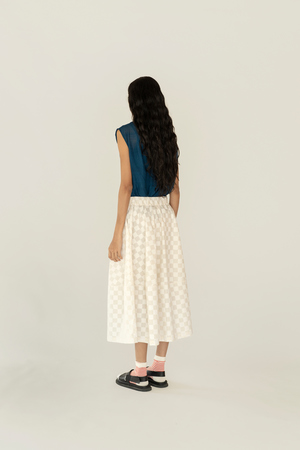 A block printed skirt crafted from 100% cotton. Features inseam pockets and a fully elasticated waist. Model is 5'8 and wearing a small/medium size. GARMENT MEASUREMENTS Xsmall: Length - 30.5", Waist - 26" Small/Medium: Length - 31", Waist - 28" Large: Length - 31.5", Waist - 30" *Please note these are approximate measurements in inches. All products are handcrafted and measurements may vary slightly due to their handcrafted nature. Made in India.