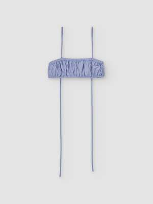 Soft ruched bralette with adjustable long straps and a relaxed, natural fit. Delicate ruching creates subtle texture and movement. Designed to layer or wear on its own. For a complete set, wear with the Shingu shorts. - Italian fabric: 87% lyocell, 13% polyamide - Made in Spain - Hand wash in cold water. Dry flat - Celine is 178cm tall and is wearing a size S.