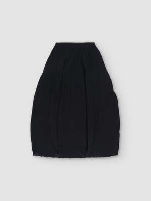 Balloon midi skirt knitted in a fine striped tonal jacquard, crafted from extrafine merino wool and mak cotton. Featuring a rounded panelled structure with side pockets and a ribbed elasticated waistband. - Italian yarns. 90% Extrafine Merino Wool 10% Polyamide / 82% Mak Cotton 18% Polyamide - Made in Spain - Hand wash in cold water - Naja is 173cm tall and is wearing a size S