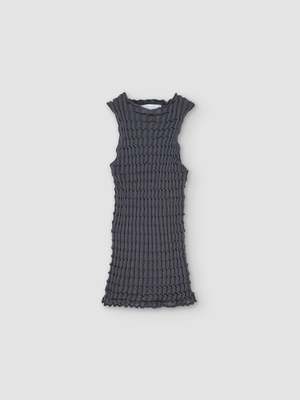Pleated sleeveless knit. Lightweight fine knit crafted from an ultrafine Mak cotton blend with a dry handfeel using wholegarment technology. Features a textured ribbed stitch that creates a pleated look all over, round neck, rolled trims, and side splits. - Italian yarn. 82% Mak cotton, 18% polyamide - Made in Spain - Hand wash in cold water. Dry flat - Agot is 175cm tall and is wearing a size S