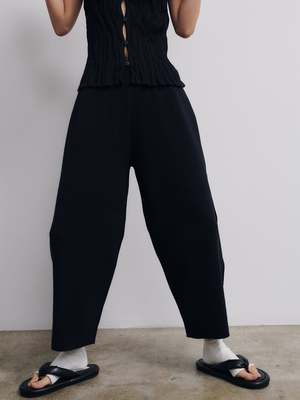 Tapered pants crafted from a fine Italian organic cotton compact knit. These relaxed-fit pants feature an elasticated waistband and side pockets. - Italian yarn: 90% organic cotton, 10% polyamide - Made in Portugal - Hand wash in cold water; dry flat - Asako is 178 cm tall and is wearing a size S Organic Cotton Cotton is one of the most comfortable and versatile everyday fibres. Its airy structure helps the body to regulate its own temperature, making it ideal for all seasons. Organic cotton is cultivated without synthetic agricultural chemicals such as fertilizers, pesticides, or transgenic technology, resulting in a lower impact on the environment. Organic production systems replenish and maintain soil fertility, reduce the use of chemicals, and support biologically diverse agriculture.