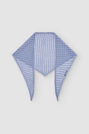 Triangle neck scarf knitted in a lace-like open stitch from a corded organic cotton blend yarn with a dry handfeel. Made with organic cotton. Organic cotton uses no harmful chemicals in the water or for the workers who handle it and typically supports better soil health compared to conventional cotton. Made in Portugal. Fabric: 52% Organic Cotton, 48% Viscose. MPN: 4000000020271.