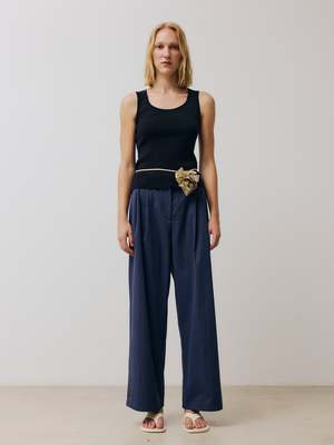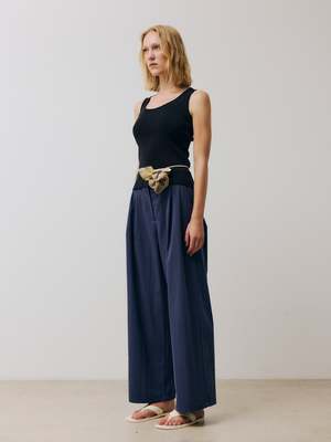 Form-fitting scoop-neck tank top crafted from fine organic cotton in a compact knit and finished with rolled trims. For a complete set, wear with the Futon pants. - Italian yarn; 90% Organic Cotton, 10% Polyamide - Made in Portugal - Hand wash in cold water; dry flat - Asako is 178 cm tall and is wearing a size S Organic Cotton Cotton is one of the most comfortable and versatile everyday fibres. Its airy structure helps the body to regulate its own temperature, which makes it ideal for all seasons. Organic cotton is naturally cultivated without the use of any synthetic agricultural chemicals such as fertilizers or pesticides or transgenic technology, having a lower impact on the environment. Organic production systems replenish and maintain soil fertility, reduce the use of chemicals, and build biologically diverse agriculture.