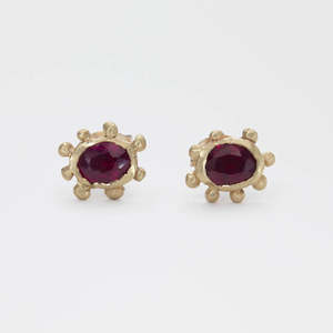 Ruth Tomlinson 9ct yellow gold and rubies. 6mm x 7mm Handmade in London, England