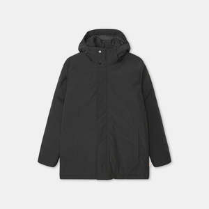 Mid length heavy puffer jacket made of a thin recycled polyester fabric with subtle woven ripstop pattern. The jacket is made with detachable hood and characteristic cutlines at the shoulder and sleeve. The welt-pockets are lined with warm fleece for extra comfort and the rib cuff at the sleeve-end and the adjustable bottom hemline keeps out the wind and deliver the delicious warmth, you need on cold days. The rain repellent Teflon EcoElite coating is environmentally friendly, free of harmful fluorocarbon. The coat has inside puffer canals filled with the warm and highly compressible insulation is a DuPont Sorona Padding, a fiber partially made with renewable plant-based ingredients and produced with particular attention toward the environment.