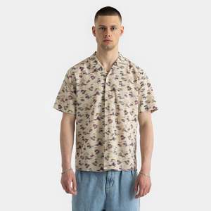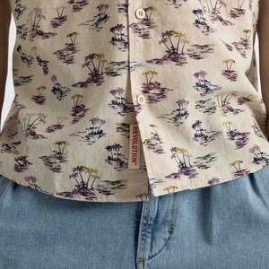 Short sleeved shirt with a cuban collar in an organic cotton-linen fabric, with a small toned down palm tree all-over-print - Model is 189 cm tall and wears a size 32 - Regular fit - 115 gsm shirt - Machine wash at 30C with a gentle cycle 70% organic cotton, 30% linen
