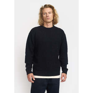 This loose-fit crewneck sweater is a versatile piece for everyday wear. It is knitted from an organic cotton, cotton, and nylon blend yarn, spun from both straight and hairy threads, which gives the sweater a soft, structured finish. The mlange with a subtle two-toned appearance, along with ribbed details, adds a tactile finish to the pullover. Knitted in a medium 5-gauge, this sweater can be worn as a standalone piece on cooler days or evenings. 48% Cotton, 36% Organic Cotton, 8.5% Recycled Polyester, 7.5% Nylon.
