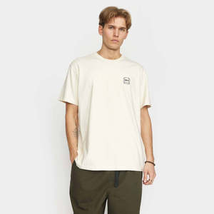 Loose-fitted t-shirt with a round neck and short sleeves, made in an organic cotton-jersey, with a weight of 220gsm. The heavy-weight jersey-fabric with a crispy hand-feel ensures stability and durability to the t-shirt. The organic cotton is grown from non-genetically modified seeds without chemical fertilizers or pesticides, which enhances biodiversity, and with less impact on the ecological balance. The t-shirt features a small monochrome chest-print, a large print center back and a brand-label at the bottom. 100% organic cotton