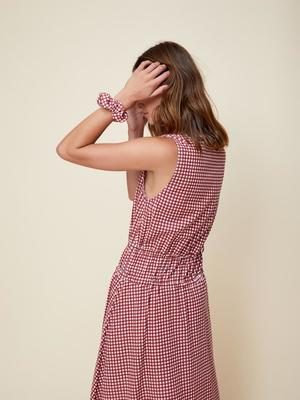 The Lorilee Dress is a long line midi dress in soft tencel linen blend featuring a v-neck and drawstring waist. Falls to above ankle. - 55% Tencel 25% Cotton 10% Linen - Drawstring waist - Jena is wearing size 8 and is 178cm tall - S / 8 Chest measures 48cm, Length measures 123cm - Also available in Wallflower print.