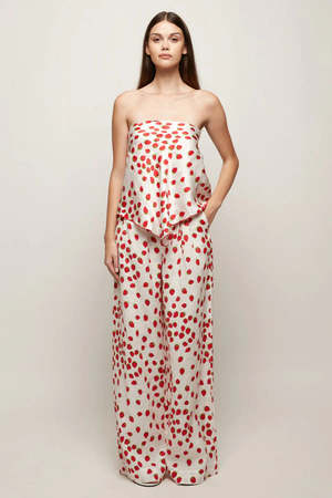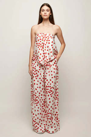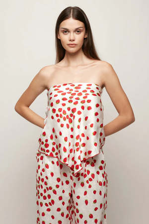 A strapless satin top with a draped, scarf-inspired hem. Designed to fall fluidly over the body with subtle movement.