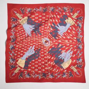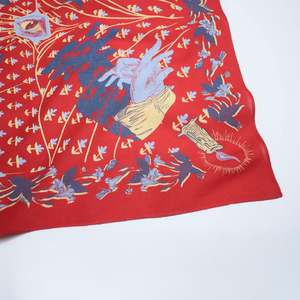 Devils trumpets form the floral border on this Sable bandana. They are known for their hallucinogenic properties and causing the minds eye to play tricks on you. Shadows cast on walls, discover what lies beneath the surface. 100% US cotton. Garment dyed, discharge printed, and garment washed. Dimensions: 21 x 21. Machine wash in cold water with like colors. Air dry. Made in USA (New York City).