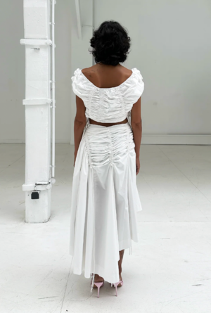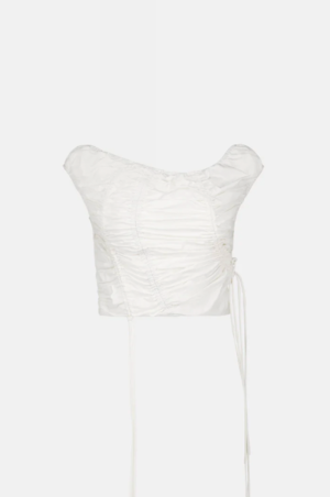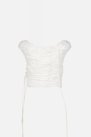 Smocked cotton top with a structured silhouette and adjustable drawstrings at the sides. Wide neckline designed to be worn on or off the shoulders. Cropped length. This product is true to size. The model is wearing size S and is 170 cm.