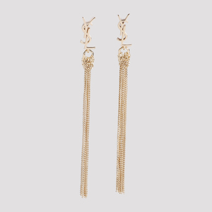 Gold Brass Pompons Chains Earrings Saint Laurent Gold Brass Pompons Chains Earrings. Pure gold-tone brass earrings, top signature YSL logo2, tonal pendant with chain details, back pinned fastening. Made in Costa Rica. Fabric/Material: Brass | 100%BRASS.