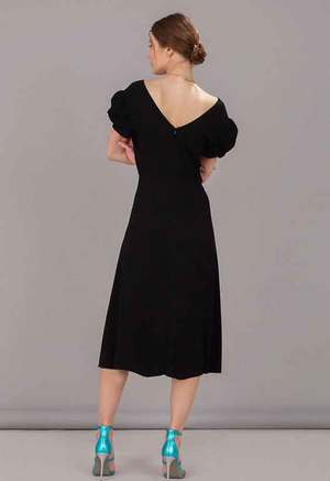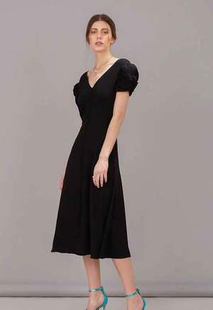 The perfect day-to-night dress, Saloni's Margot dress will prove a much-loved wardrobe ally for years to come. With an elegant V neckline at the front and back, this midi-length dress is fitted at the waist for a flattering fit, and features a gathered skirt that offers gentle movement as you walk. With gently puffed sleeves and decorative button detailing down the bodice, this dress is as ideal worn for summer brunches with espadrilles and a basket bag as it is with heels for a more formal occasion. - Shirred puff sleeve - Row of non-functional buttons down center front - 100% Viscose - Delicate Dry Clean Only
