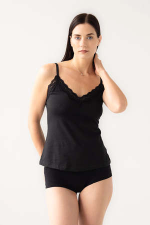 We are so proud to present a new development! This is a super soft camisole made out of 100% Pima Cotton and stretch lace trim. It fits loose, for a more contoured fit order one size down. Adjustable straps. Note - our white is an ivory white. Size Medium Measurments Full Length: 24in / 60 1/2cm Chest(half): 14 1/2in / 37cm Waist: 14 1/2in / 37cm Spagetti Straps: Adujtable / Longest: 14 1/2in Shortest: 8in