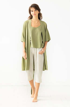 Salua's woven cotton collectsion is made with our Lino fabric that looks like linen, but is 100% cotton and super soft to the touch. Throw our summer day robe on over your favorite shortie PJs or your swimsuit. Perfect for lazy mornings and long afternoons at the beach.