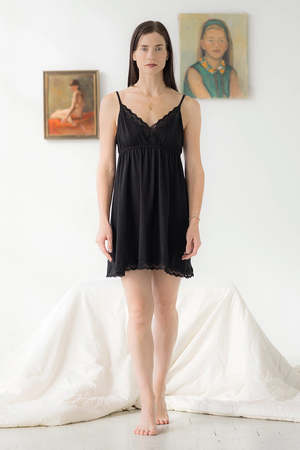 This short chemise brings a dreamlike softness to your sleep routine. Made from our ultra-soft brushed pima cotton, it feels as light and gentle as a cloud against the skin. The V-neckline, adorned with delicate stretch lace, and a supportive elastic band beneath the bust create a perfect balance of elegance and comfort. Finished with lace trim along the hem and delicate spaghetti straps, this piece is as graceful as it is cozylike slipping into a cloud every night. Length from shoulders: 32 in Proudly made in Colombia.