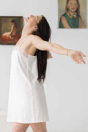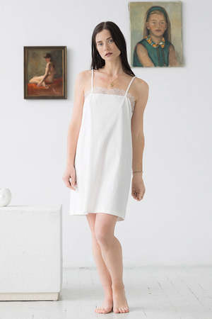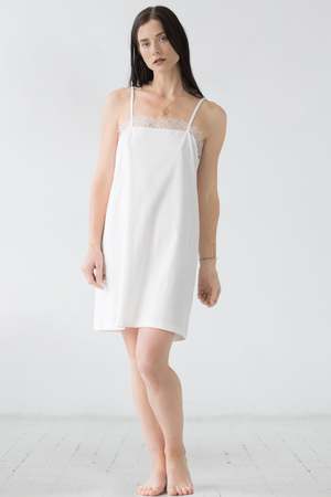 This nightie chemise, crafted from ultra-soft brushed pima cotton, exudes elegance with a minimalist design. The straight neckline is adorned with delicate Japanese eyelash lace, adding a refined, feminine touch to the piece. Cut to drape comfortably over the body, the chemise provides a relaxed fit that feels airy and light against the skin. Finished with slender spaghetti straps, this piece blends luxury with simplicity, making it perfect for a peaceful nights sleep or lounging in style. This chemise is a timeless addition to any sleepwear collectsion. 100% Brushed Pima Cotton Length from shoulders 33" Ethically made in Colombia
