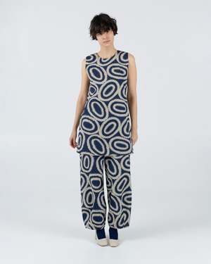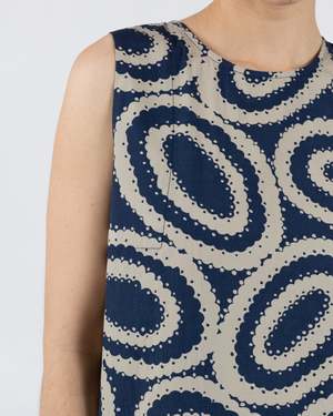 True to size fit. 100% cotton poplin, printed in Los Angeles. Sewn in Los Angeles. Mia is 5'10" with a bust of 33", waist 27", and hip 36.5", and wears size S. Measurements XS: bust 38" | shoulder to hip 33.5" S: bust 40" | shoulder to hip 34" M: bust 42" | shoulder to hip 34.5" L: bust 44" | shoulder to hip 35" XL: bust 46" | shoulder to hip 35.5"