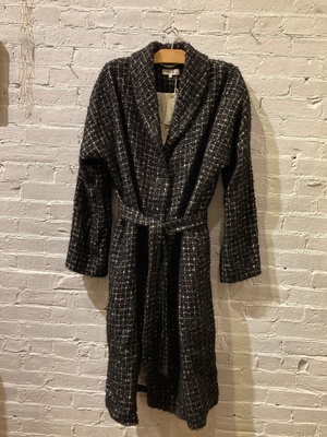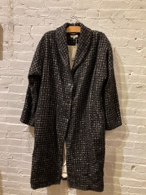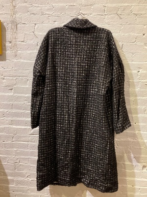 Samuji Textured Wool Coat oversized cozy style optional waist tie hidden front pockets wool / mohair outer cotton lined inner fabric from Italy made in Estonia