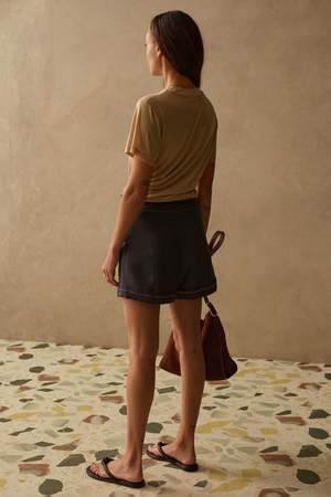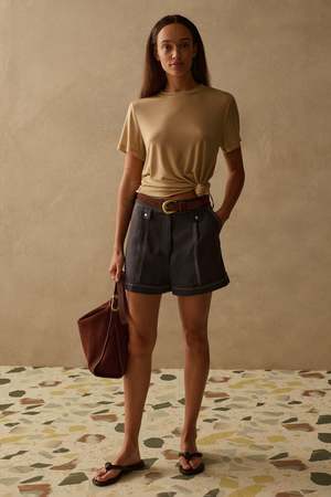 Staple shorts are a part of each and every collectsion, designed to be worn season after season. The Rory Shorts are a classic tailored shape with a cuffed hem and contrast stitching. This signature shape will be a go-to this summer, paired with many items in your wardrobe, from a jersey t-shirt to a dressy blouse. Color: Caribbean Fabrication: 80% Ramie, 20% Cotton Fit Notes: True to size